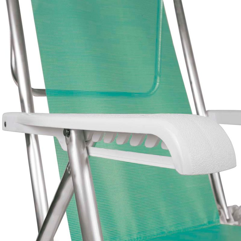 A Cadeira Reclinável 8 Posições Alumínio é fabricada pela Mor em materiais de excelente qualidade. Possui estrutura em tubos de alumínio, rebites em aço e suas peças plásticas em polipropileno. Conta com braço largo e ergonômico com regulagem para oito posições diferentes, para que você relaxe na inclinação que for mais confortável. A cadeira fica completamente sentada na posição 1 e completamente deitada na posição 8, ideal para banhos de sol, além disso, seu apoio permite maior estabilidade nessa posição. Sua tela é produzida em 100% polietileno com revestimento em PVC. Super resistente, suporta até 100 Kg e vai ser a opção perfeita para seus momentos de descanso.