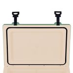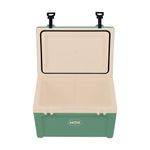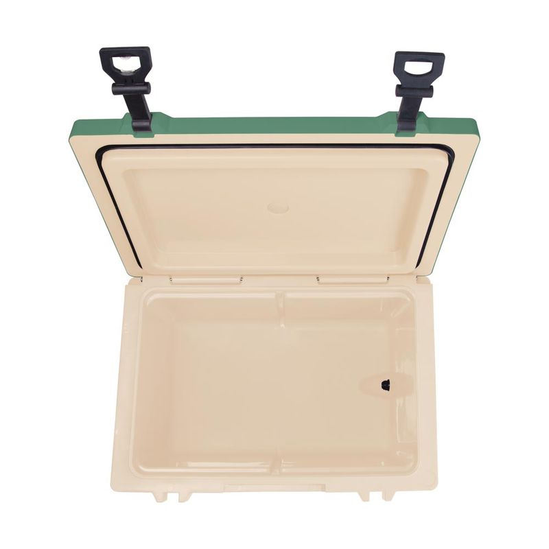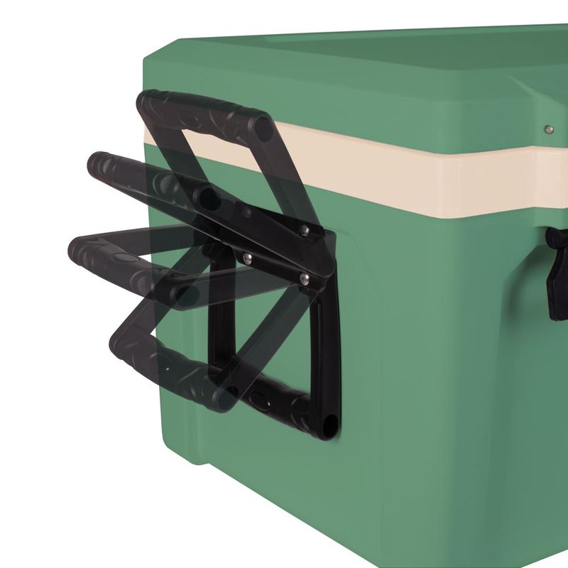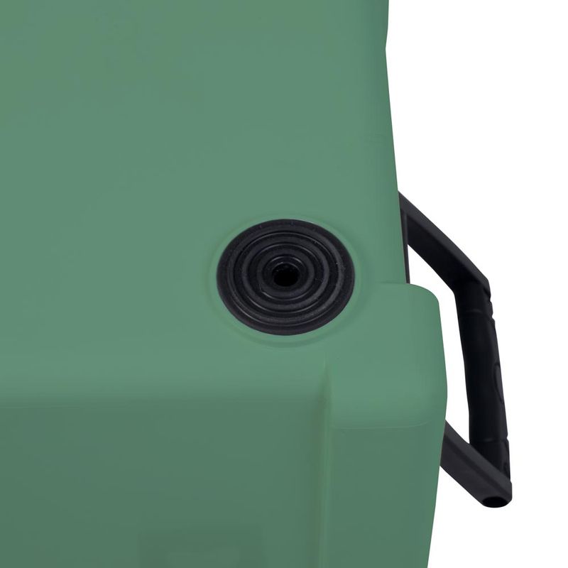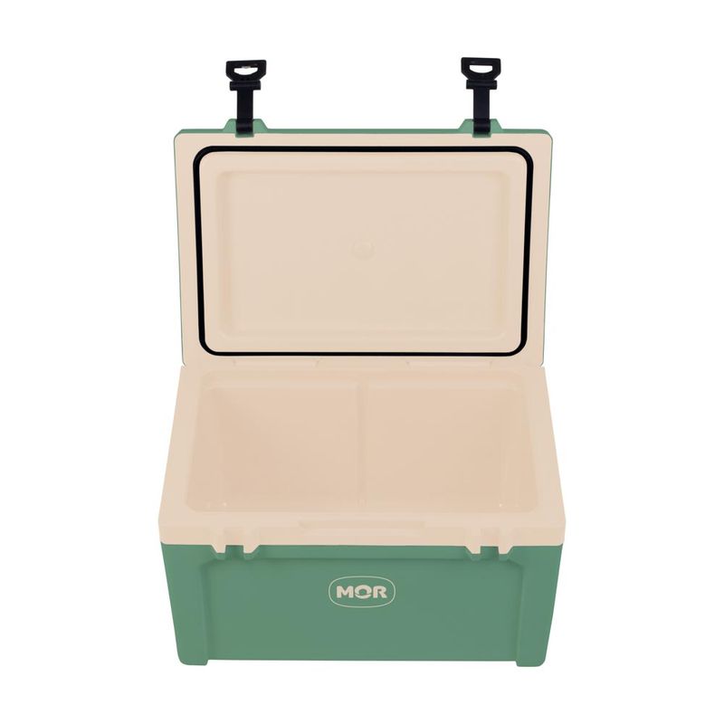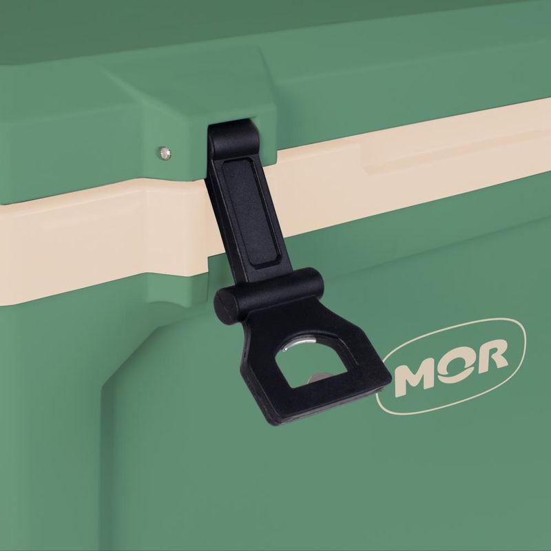 A Caixa Térmica Mor Summit 50L Verde é ideal para transporte seguro de alimentos e bebidas, contando com duas alças laterais e duas alças na tampa, contendo numa delas abridor de garrafa. É livre de BPA e possui um dreno para saída de água que permite que o líquido seja drenado facilmente sem exercer força. A tampa da Caixa Térmica Summit 50L suporta aproximadamente 150kg, servindo também como assento.