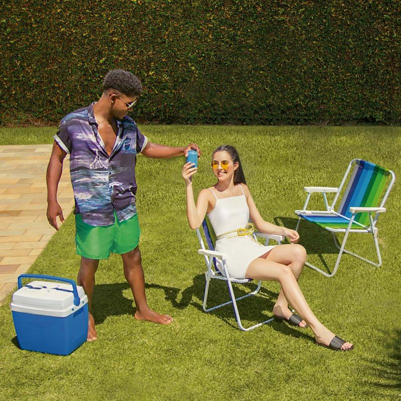 Para acompanhar seu dia na praia, camping ou até mesmo garantir as bebidas geladas e os lanchinhos em longas viagens, a Caixa Térmica 34 Litros da Mor é item indispensável! As Caixas Térmicas Mor possuem parte interna e externa em polipropileno injetado, tampa soprada e contam com isolamento em isopor. Além disso, são desenvolvidas com material 100% virgem, atóxico e sem odor, o que garante a qualidade e a durabilidade do produto. As dimensões internas da Caixa Térmica permitem que sejam armazenadas 50 latinhas de 350ml ou 7 unidades de garrafas pet de 2 Litros em pé ou deitadas. Sua tampa possui design que permite apoiar 3 latinhas e outros objetos na parte superior. Para facilitar o transporte, possui uma alça prática para você carregar sempre que desejar garantir as bebidas geladinhas para a reunião com amigos ou familiares! Disponível nas cores azul e vermelha. Escolha já a sua!