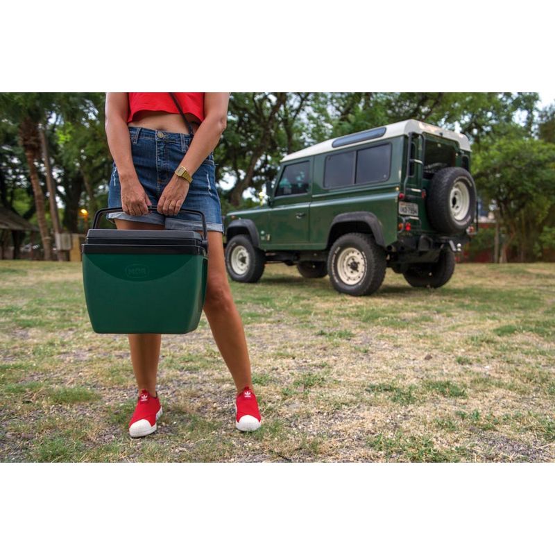 Para acompanhar seu dia na praia, camping ou até mesmo garantir as bebidas geladas e os lanchinhos em longas viagens, a Caixa Térmica 34 Litros Verde Escuro da Mor é item indispensável! A Caixa Térmica possui parte interna e externa em polipropileno injetado, tampa em polietileno e isolamento térmico em poliestireno expandido, material 100% virgem e atóxico, o que garante qualidade e durabilidade. Suas dimensões internas permitem que sejam armazenadas cinquenta latinhas de 350ml ou sete unidades de garrafas pet de 2 litros. Sua tampa possui design que permite apoiar duas latinhas na parte superior e alça para facilitar o transporte. Aproveite e peça já a sua pelo melhor preço!