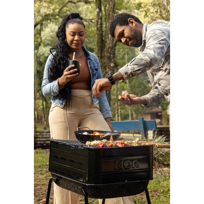 Para os amantes de um bom churrasco feito na brasa, a Churrasqueira Arizona é uma ótima pedida! Sua bacia esmaltada absorve melhor o calor garantindo rapidez e uniformidade no preparo de seus assados, além de superfície lisa que permite uma limpeza muito mais rápida e prática.Com estrutura em aço esmaltado e pés em tubo de aço, ela acompanha um kit de acessórios cromados para você sair usando: dois espetos simples de 58 cm, um espeto duplo de 58 cm e uma grelha com cabo de madeira. Fácil de montar e transportar para onde quiser, a Arizona vai garantir deliciosos momentos de descontração entre amigos e familiares em volta do fogo!