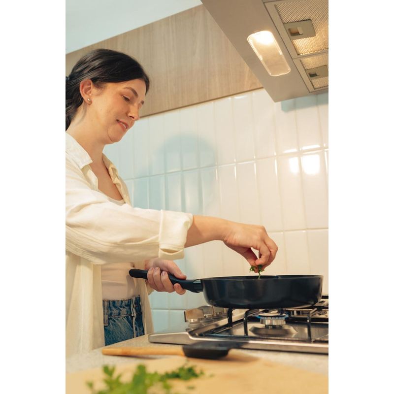 A Frigideira Ônix 24cm oferece praticidade e saúde na cozinha, com revestimento cerâmico antiaderente que cozinha rápido e com menos óleo. Ideal para porções pequenas, é compatível com fogões a gás e vitrocerâmicos. Seu design é moderno, além de ser fácil de limpar, resistente e livre de substâncias tóxicas.